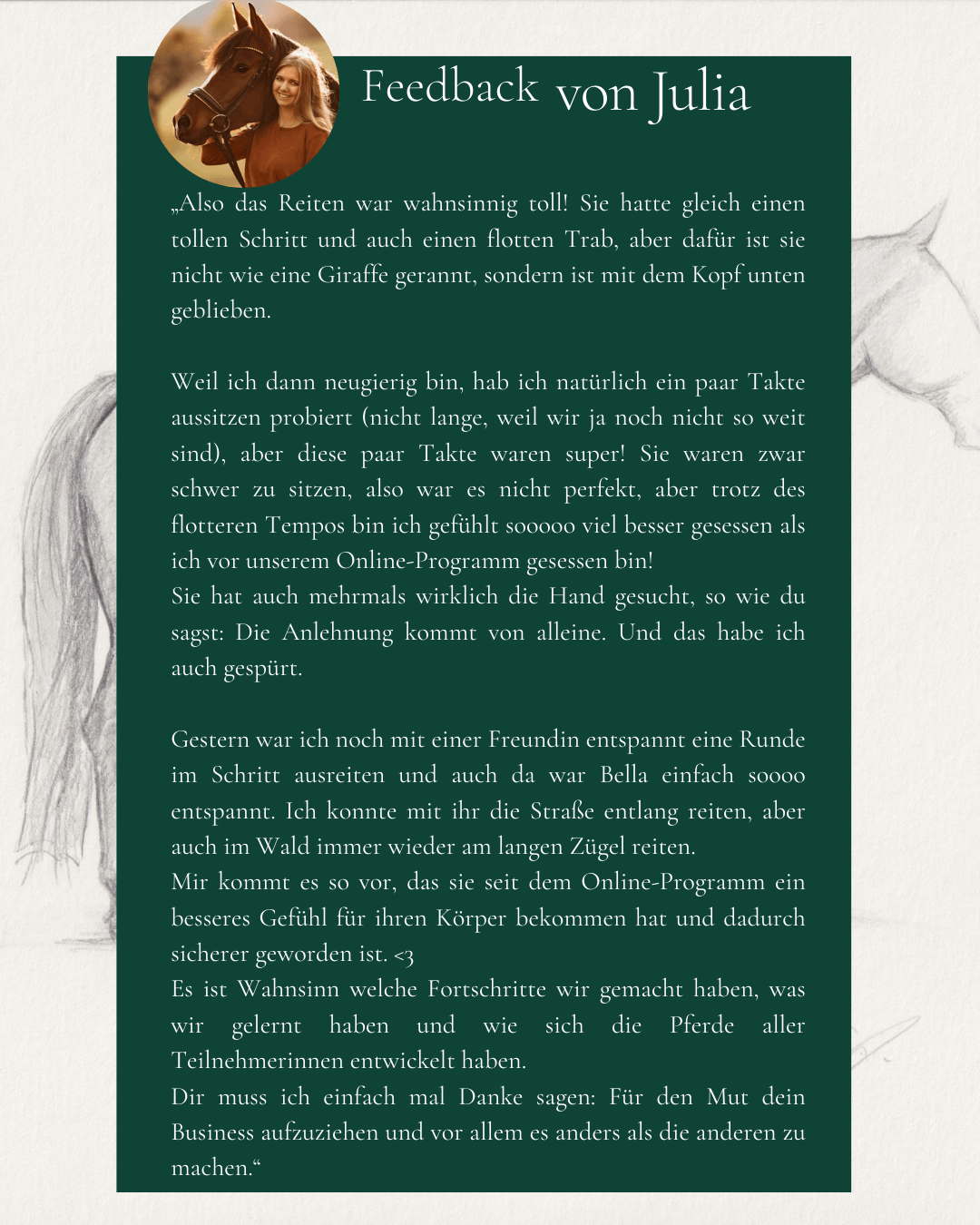 Welcher Schritt nun ausschlaggebend für dein Pferd und dich ist, zeige ich dir innerhalb von 30 Sekunden!