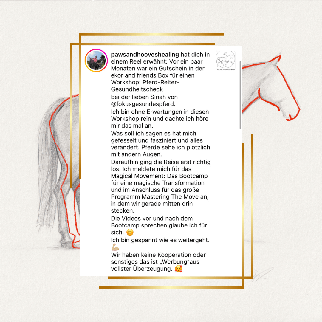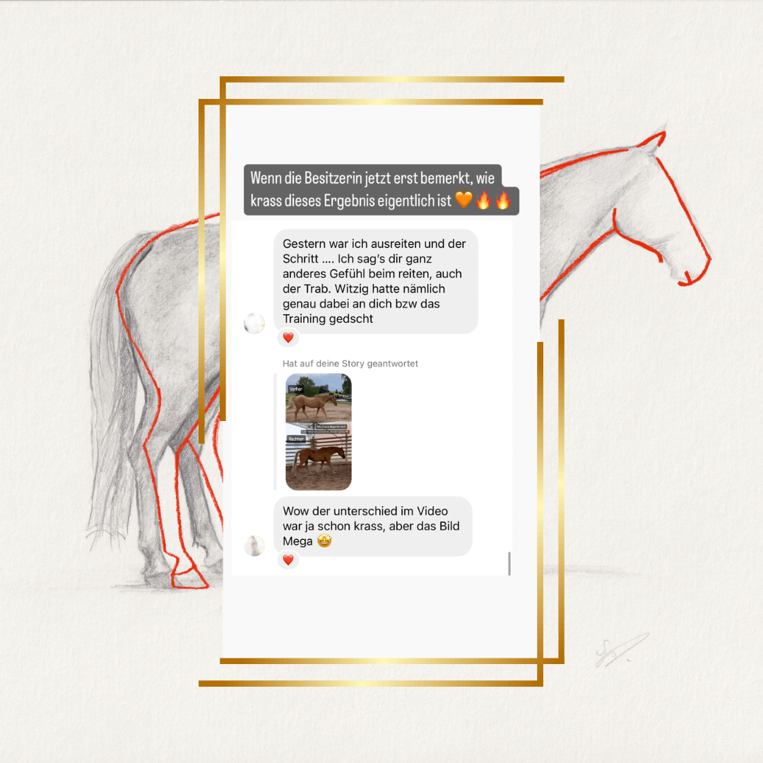 Hier siehst du ein Pferd (mit Diagnosen), was sich in 2 Wochen komplett neu bewegt. Hier erkennst du das Vorher(oben)-Nachher (unten)-Video.